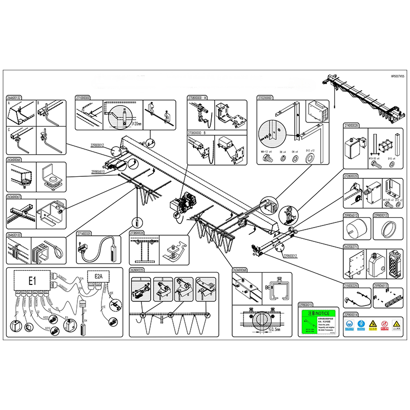 The end carriages support multiple connection types with the main girder including top, middle, or side mounting. This flexibility allows easy adaptation to different building structures and helps reduce the overall building height.