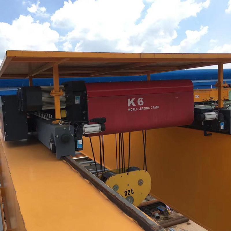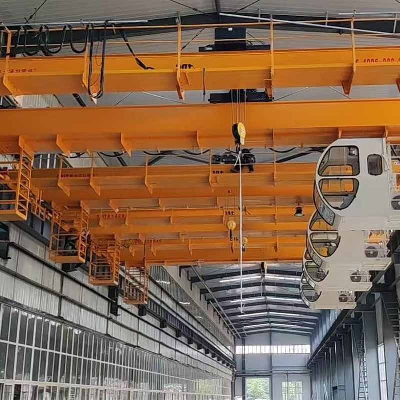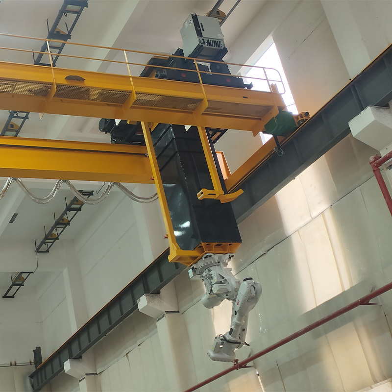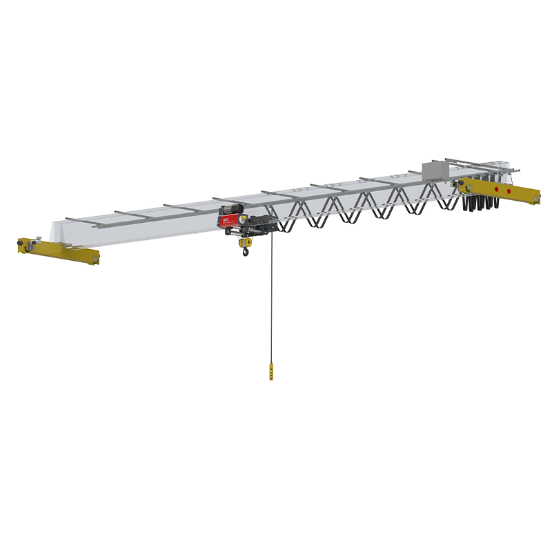 The end truck is equipped with guide rollers to correct wheel deviation and reduce rail wear. Flat wheels eliminate the need for floor grooves, enhancing ground safety and enabling the smooth movement of other workshop equipment or logistics.