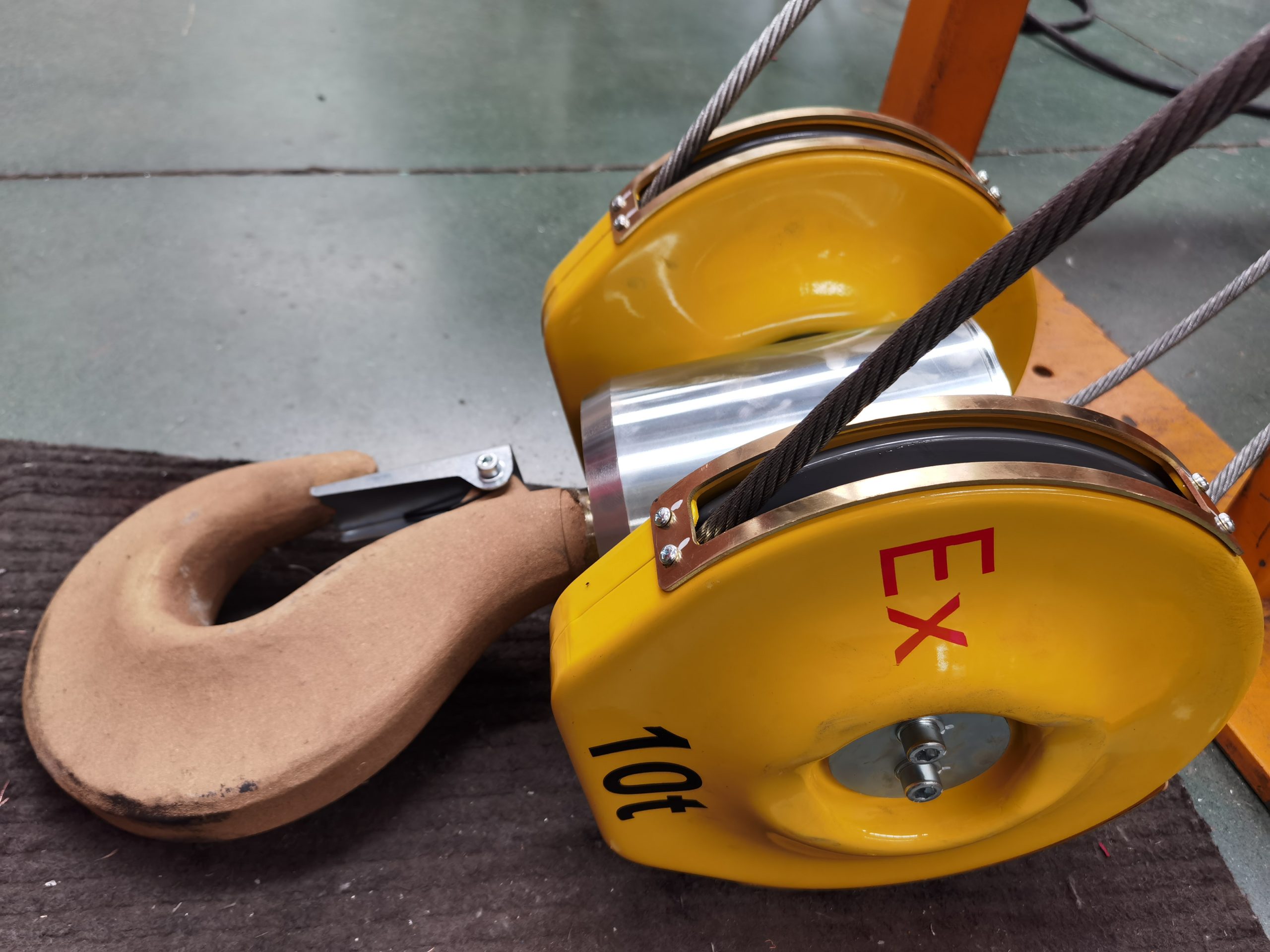 ATEX-certified explosion proof hoist for hazardous area operations, featuring intrinsically safe flameproof enclosures and non-sparking components to mitigate ignition risks in explosive atmospheres.